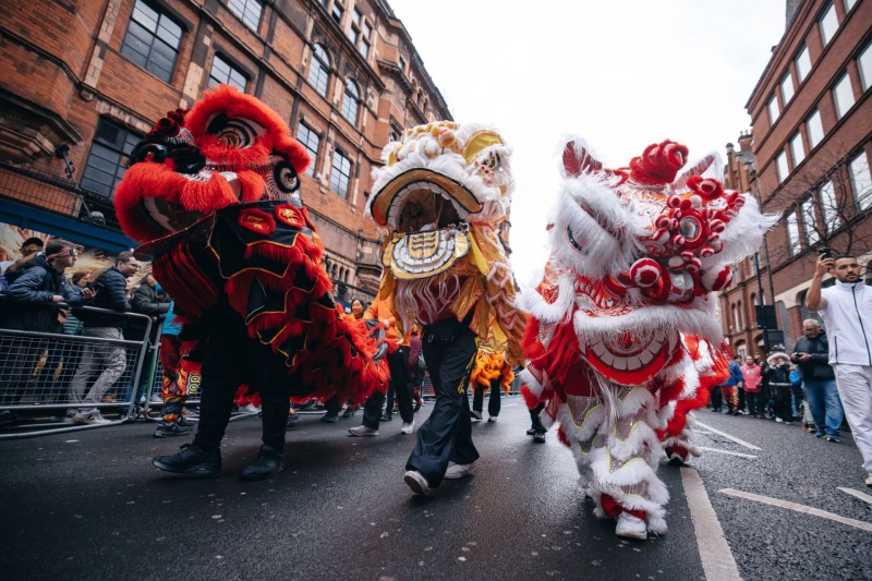 春节假期里,正在加沙城希院里,舞狮表演惹起不雅众争相摄影。